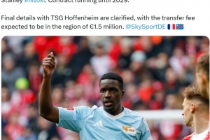报道称柏林联合与霍芬海姆的交易最终细节已经敲定,转会费预计约为150万欧元。恩索基是一名27岁后卫,本赛季在德甲12次出场贡献1球2助攻。