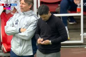 有何计策?阿尔特塔低头记小笔记,半场哨响后立马小跑回更衣室