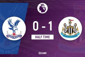 半场结束,水晶宫暂0-1纽卡斯尔联。